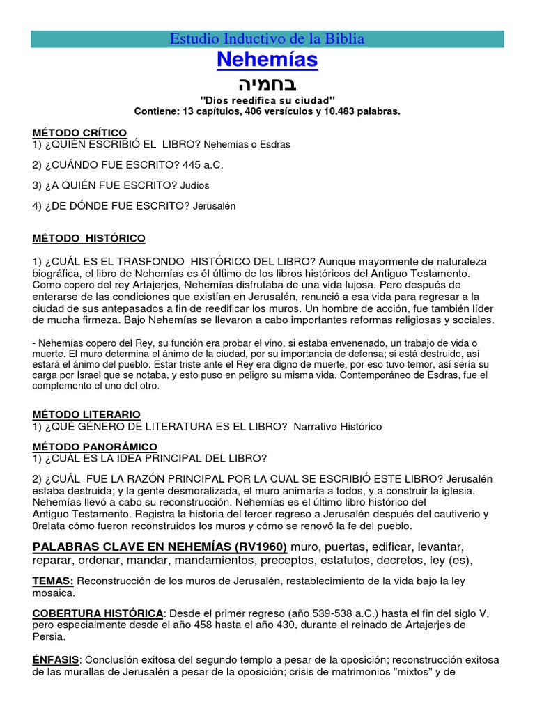 Presenta un resumen significativo de la historia, tiempo y detalles relevantes de acuerdo a los hechos de la biblia basados en comentario la biblia del diario vivir y leyendo en paralelo a la versión de la biblia biblia reina valera 1960. La parte que corresponde a esdras trata especialmente de la reconstrucción del templo (esd. Mas de 300 clases biblicas para descargar, entra aqui. Concretamente, esdras y nehemías relatan los hechos acaecidos en un siglo entero, desde 538 a. Version biblia lenguaje sencillo (nuevo testamento) (bls) online
